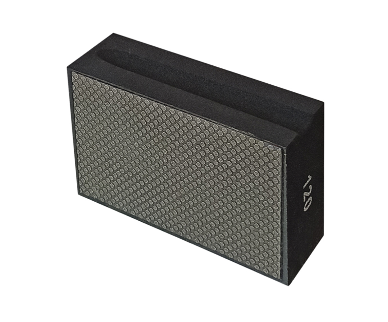 Алмазные губки — это специализированные инструменты для ручной шлифовки и полировки натурального камня (гранита, мрамора) и керамических материалов (плитки, керамогранита). Они эффективно удаляют сколы после резки алмазными дисками, формируют фаску и обрабатывают труднодоступные участки.  																						Особенности использования: Водяное охлаждение. Обязательно применяйте воду для снижения трения и перегрева. Это увеличивает ресурс губки на 35% и предотвращает повреждение поверхности. Зернистость. Губки различаются по абразивности (например, #60 для грубой шлифовки, #3500 для финишной полировки). Начинайте с крупного зерна, постепенно переходя к мелкому для идеального результата. Область применения. Идеальны для малых площадей, углов, торцов столешниц или криволинейных поверхностей, где электроинструмент неудобен. Совет: Перед обработкой всей поверхности протестируйте губку на незаметном участке, чтобы подобрать подходящую зернистость и избежать перешлифовки. После полировки нанесите защитный герметик для сохранения блеска.